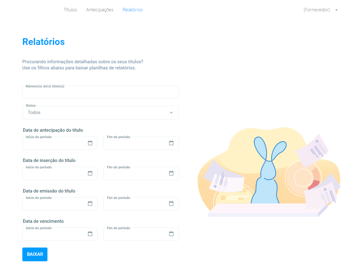 Para ter acesso ao relatório de suas operações, basta acessar o Portal da Líber, clicar em 'Relatórios' e utilizar os filtros disponíveis para realizar o download da planilha de relatório do período desejado.