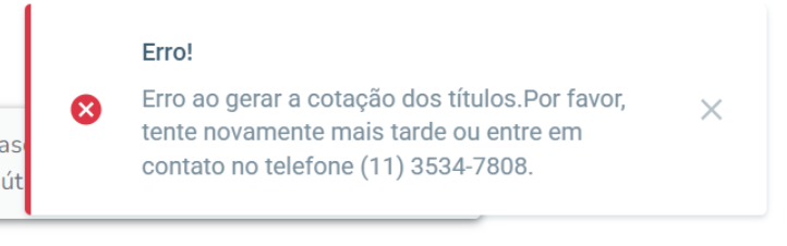 O erro ocorre quando no momento da solicitação não houver uma oferta de taxa disponível para que o(s) título(s) seja(m) antecipado(s).